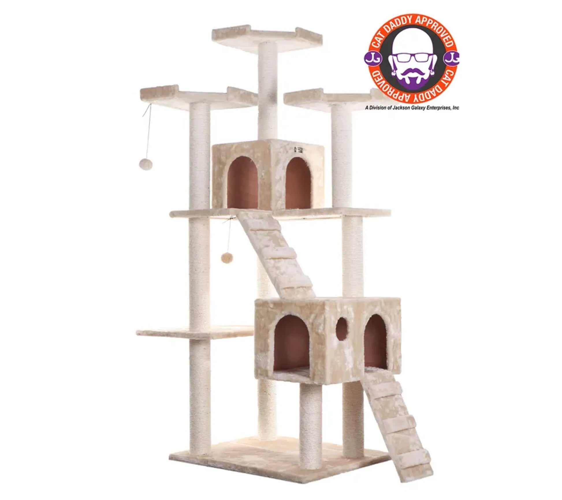model No. A7401 is a classic cat tree, Cat Daddy approved by noted cat behaviorist Jackson Galaxy, this tree boast two playhouses, 2 running ramps, 3 perches and multiple scratching posts.